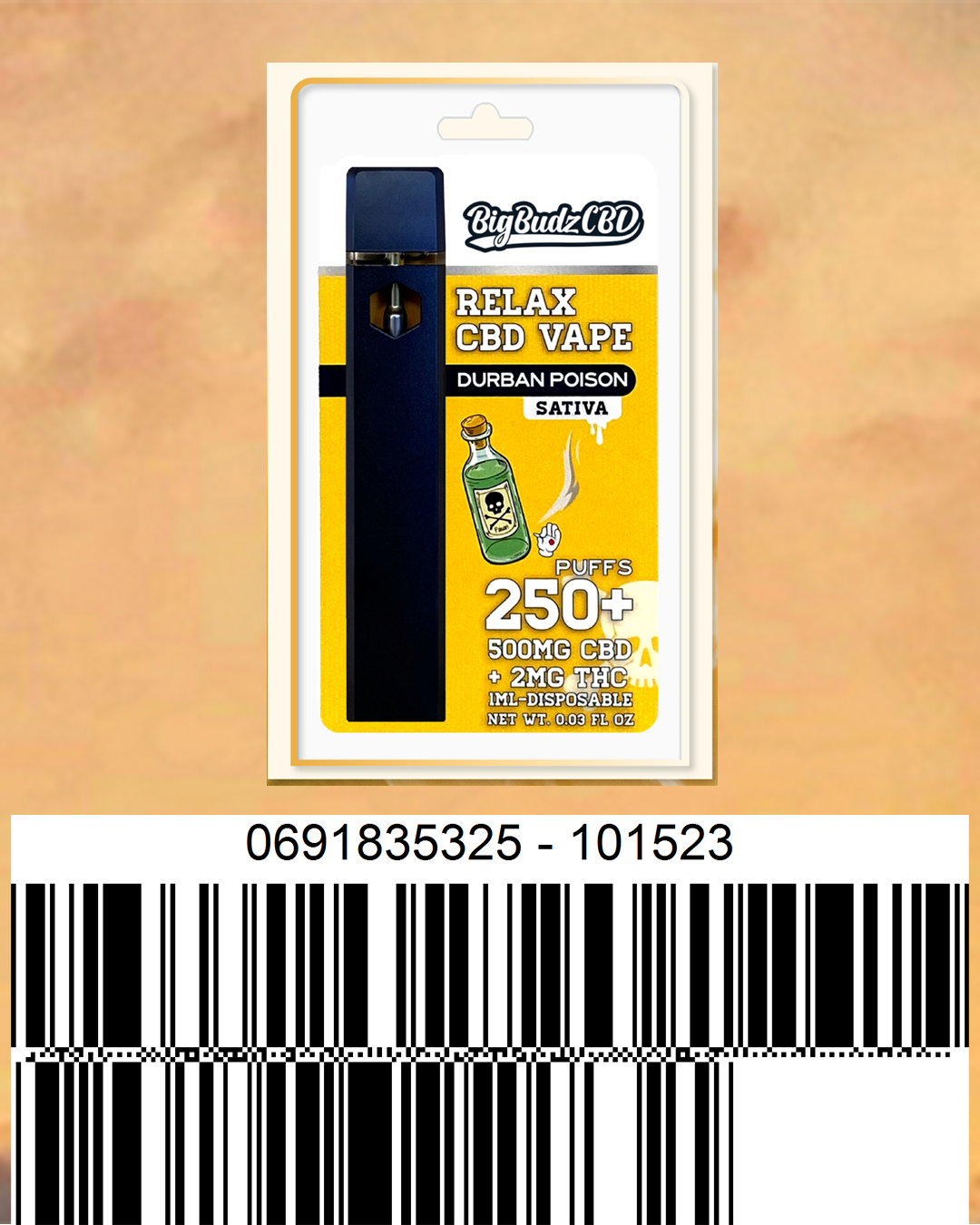 The Durban Poison 500mg Full Spectrum CBD Disposable Vape Pen is the perfect choice for those seeking a convenient and effective way to consume CBD. The Durban Poison strain offers a sweet and earthy flavor profile with uplifting and energizing effects. With 500mg of CBD per pen, it provides a potent dose of CBD that can help promote a sense of calm and relaxation, reduce stress, and alleviate pain.